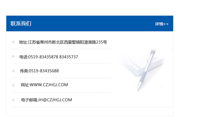 傳真:0519-83435688    郵編:213135    網址:WWW.czjhgj_com.dgweisiyi.com    電子郵箱:JH@czjhgj_com.dgweisiyi.com